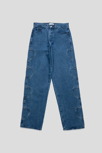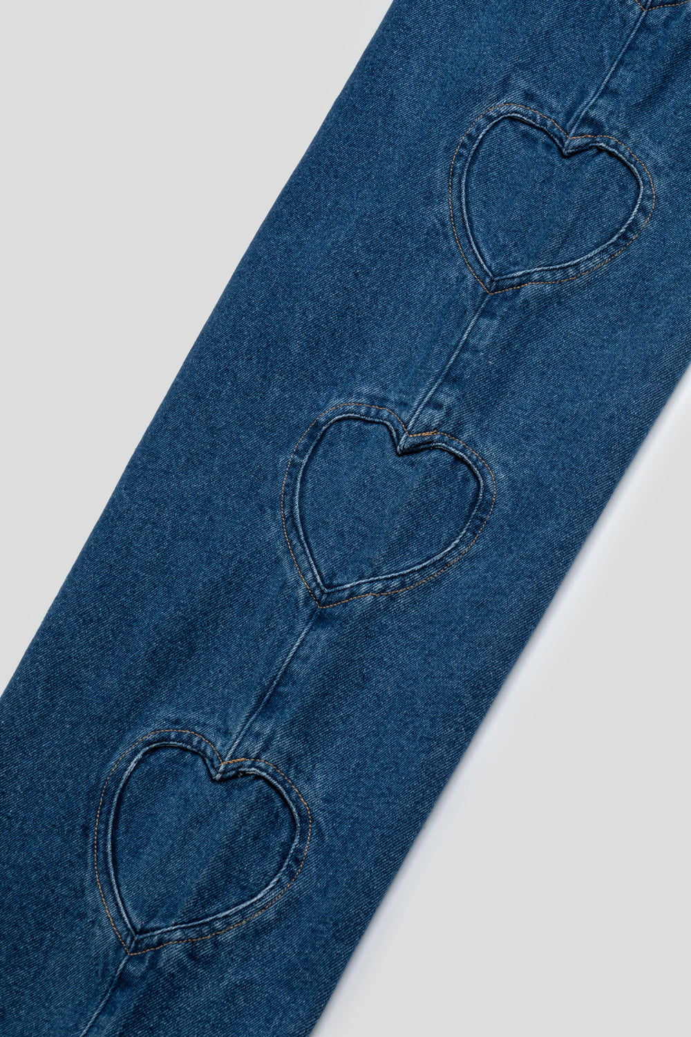 - Stitched heart detail running down each leg