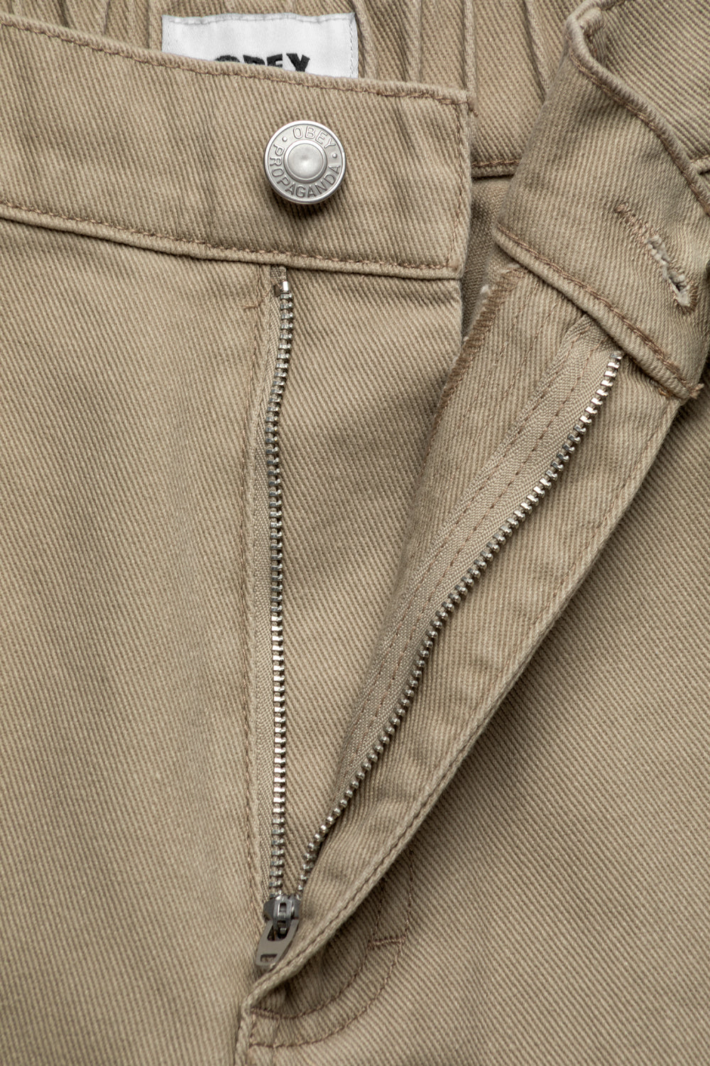 Buttoned closure with zip fly at waist