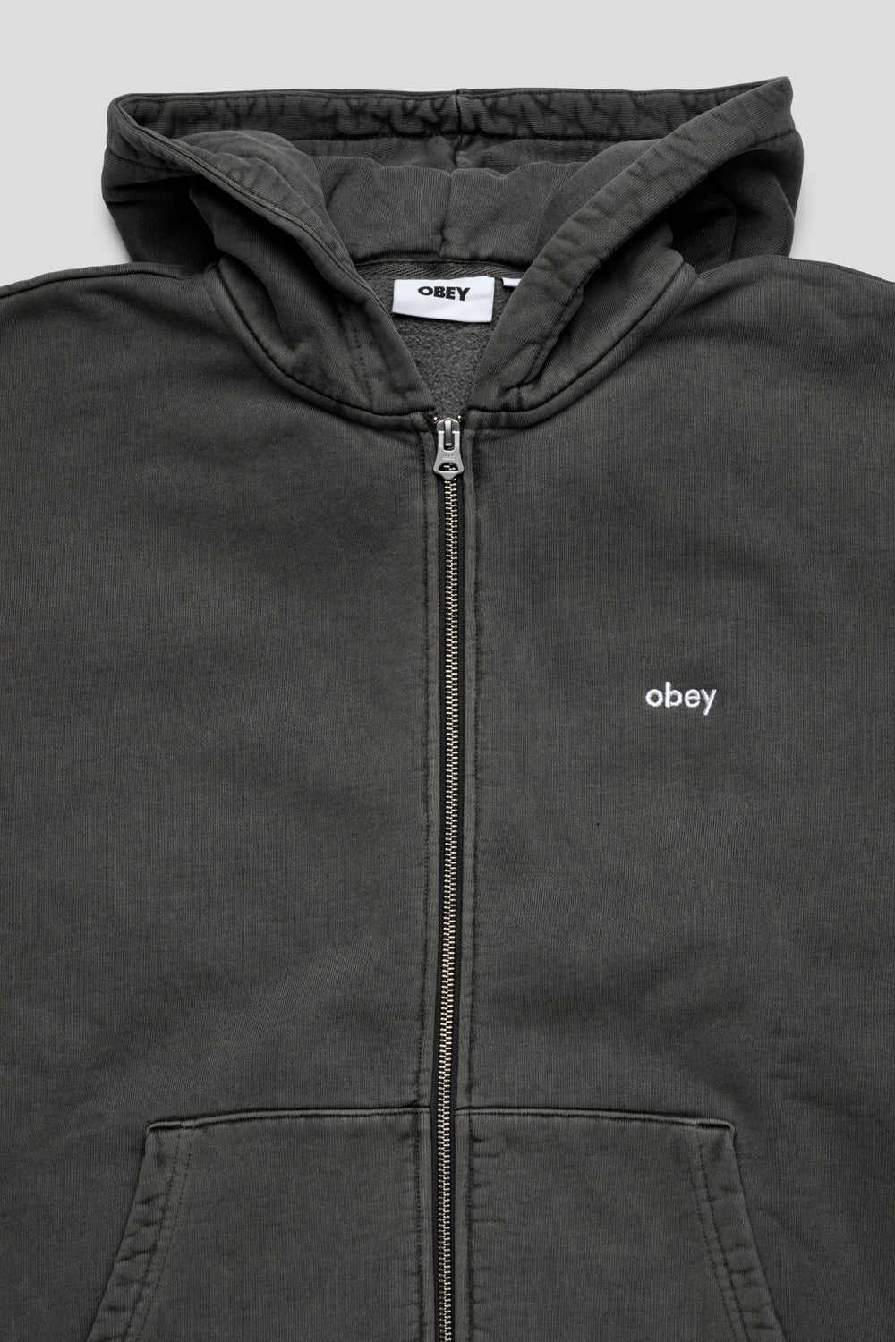 "Obey" embroidery at chest